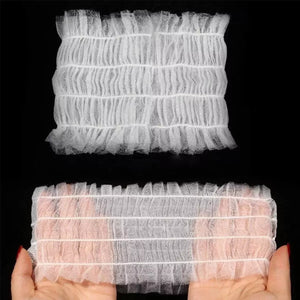 ESSENTIAL FOR HAIR CARE: The Disposable Non-woven Hair Bands in white are perfect for salon care and styling. Keep your hair neat and out of the way with these practical, hygienic hair nets. Ideal for personal or professional use.