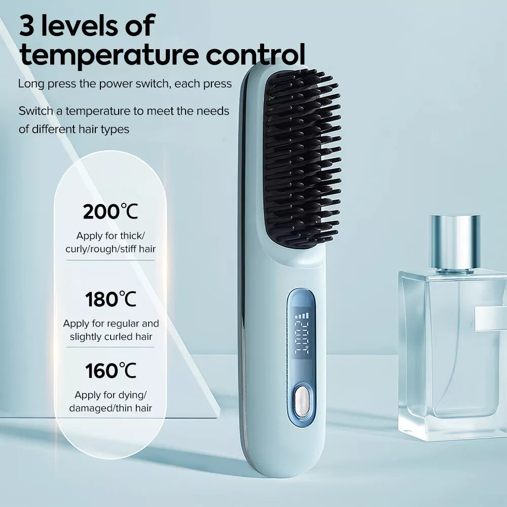 Hot Comb Brush Salon at Home 20s Fast Heating Cordless Hair Straightener Blue
