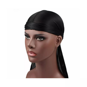 Men Women Black Durag Headwear Silk Unisex Bandana Soft Fashion Cap Wrap