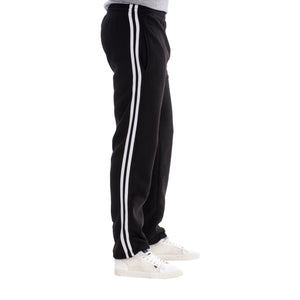 Stylish Design: Sleek black pants with striped detailing for a trendy look.