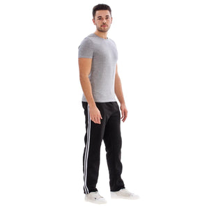 Stay comfortable and stylish with our Men's Fleece Lined Track Pants. Ideal for casual wear, featuring a sleek black design with striped detailing and a soft fleece lining for warmth, ensuring you look and feel great. Whether you're running errands or relaxing at home.