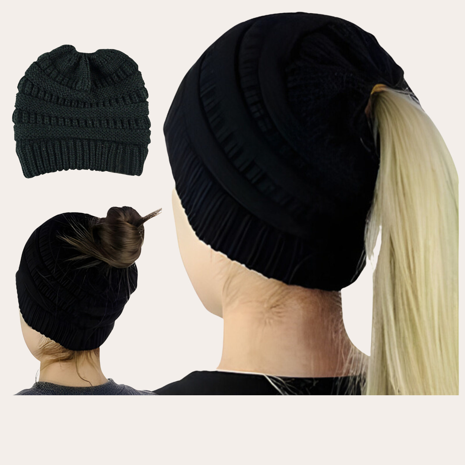 Winter Beanie Hair Ponytail Cap Comfy Stretch Knitted Hat Pony Tail Womens
