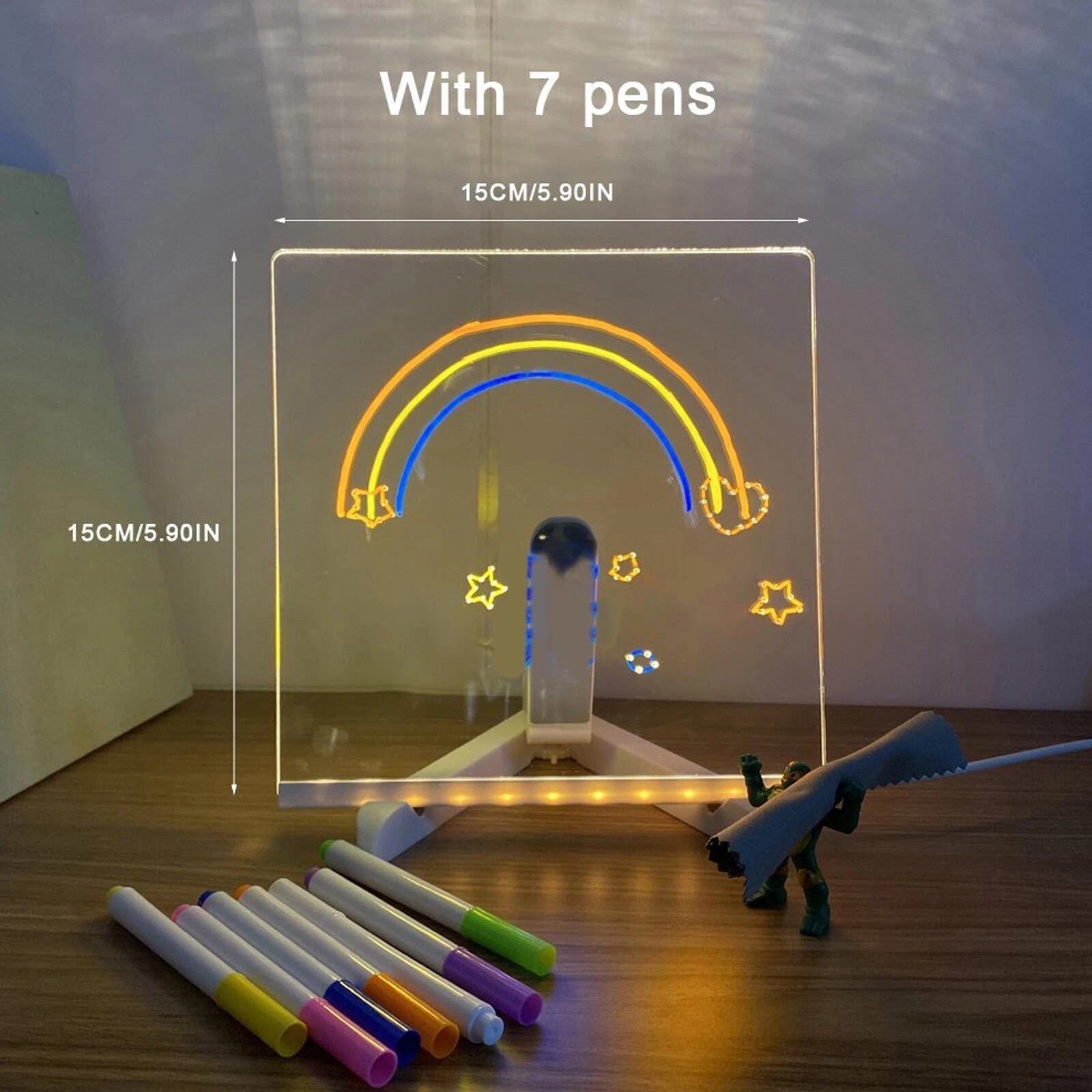 BRIGHT & CREATIVE: The LED Note Board with 7 Coloured Pens is a stylish acrylic dry erase board that illuminates your notes and drawings. Perfect for home, office, or classroom, it encourages creativity and keeps daily tasks visible and organized.