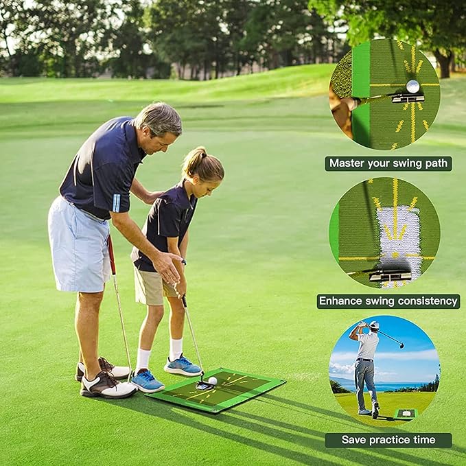 PORTABLE & COMPACT: This Golf Training Mat is designed to help golfers of all levels improve their swing technique. It is a durable, portable mat that offers a reliable surface for both indoor and outdoor practice sessions, enhancing your skills wherever you go.