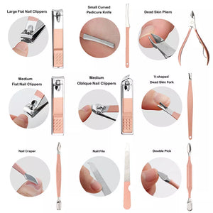 COMPREHENSIVE 18-PIECE SET: Includes nail clippers, cuticle trimmers, nail files, and more for complete nail care.