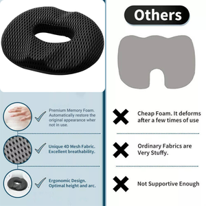 Non Slip Memory Foam for Donut Seat Cushion for Women Black