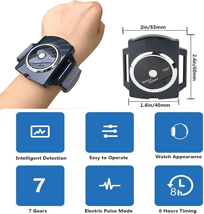COMFORTABLE & INTELLIGENT: This Electronic Anti-snoring Wristband features automatic biosensor detection and gentle stimulation, helping users change sleep position without waking, for a peaceful night’s rest.