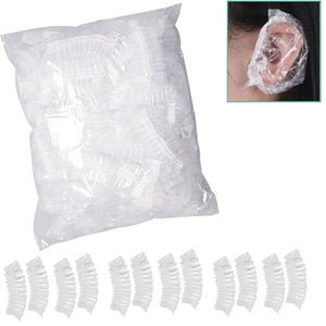 Keep your ears dry with these Disposable Waterproof Ear Covers. Made from durable plastic, they are transparent, waterproof, and elastic for a snug fit. Perfect for bathing or hair salon use, each pack includes 100 pieces. Ideal for maintaining hygiene and comfort during various activities.