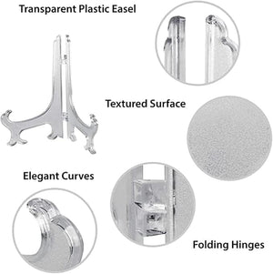 DISPLAY YOUR COLLECTIBLES IN STYLE: This set of 10 Clear Plate Stand Display Easels is perfect for showcasing your plates, photos, dishes, and artwork. Made from durable, transparent plastic, these stands provide a sleek, minimalist look while securely displaying your items.