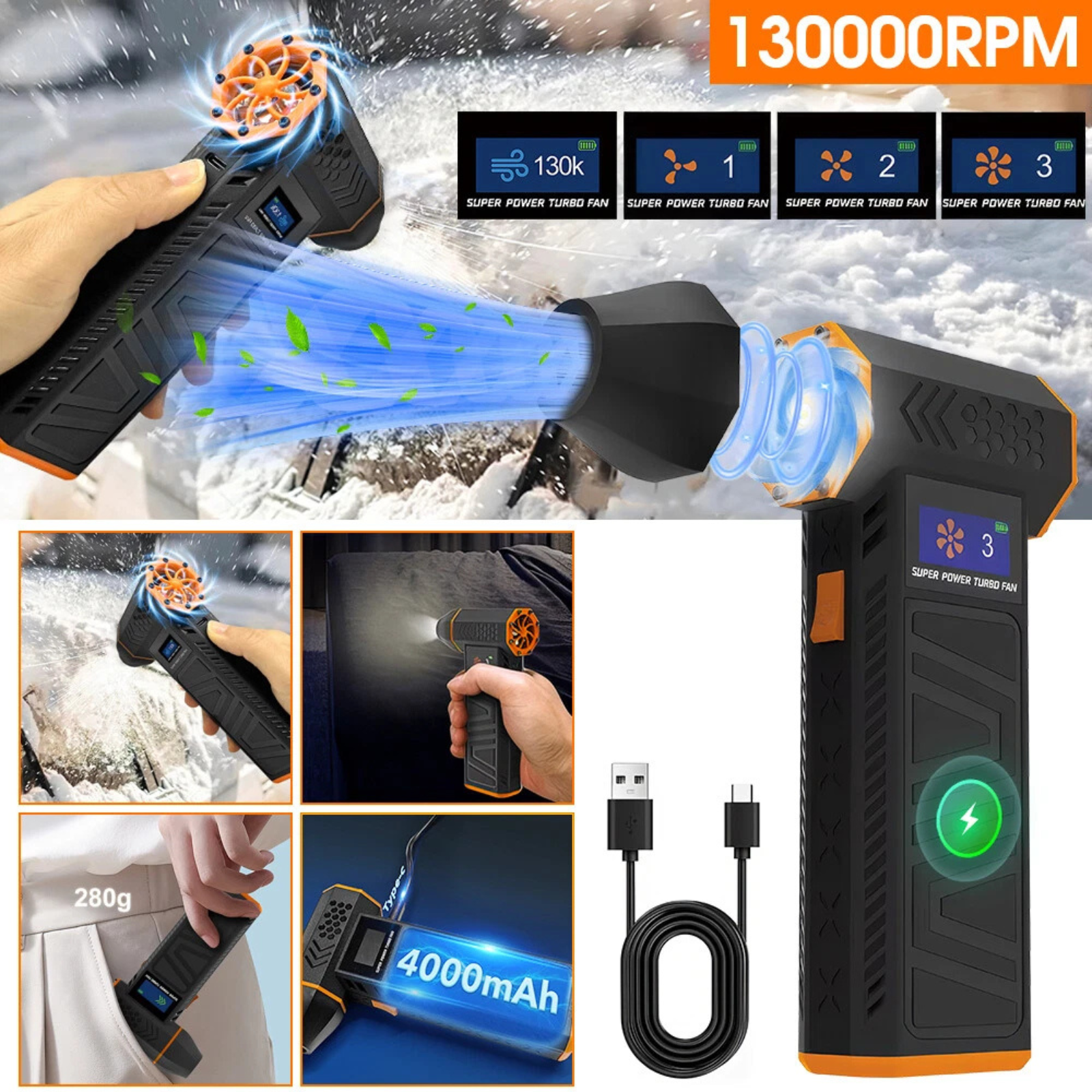 POWERFUL AIR DUSTER: The Mini Turbo Jet Fan Electric Air Duster delivers 130,000RPM super power with adjustable four-speed airflow, perfect for cleaning electronics, laptops, keyboards, and more.