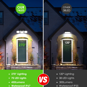 3 Head 74 Led Solar Powered Motion Sensor Light Outdoor Security Flood Lamp