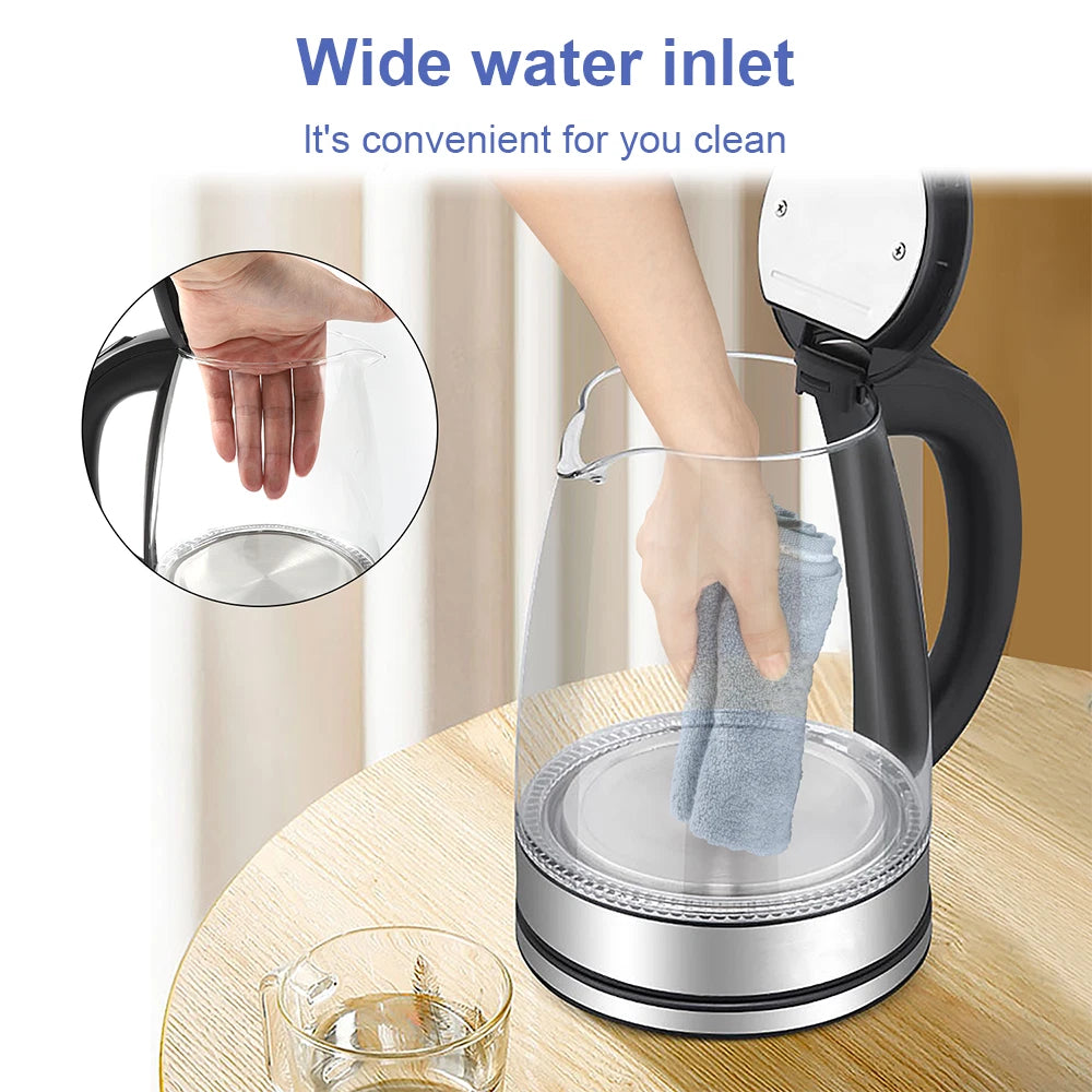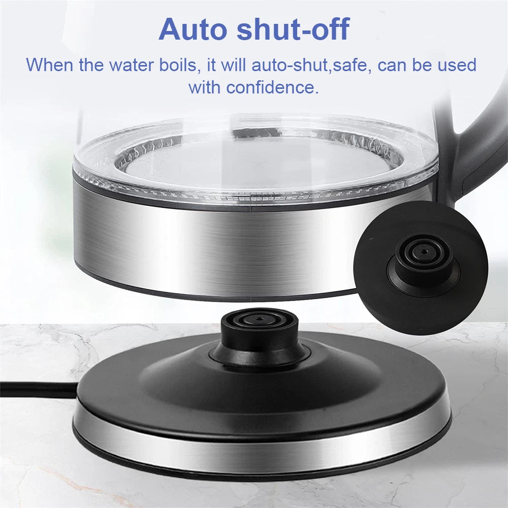 STYLISH & FUNCTIONAL: This 360° Rotating Glass Kettle combines sleek aesthetics with practicality, featuring a stainless steel base and LED illumination for a modern touch in your kitchen.