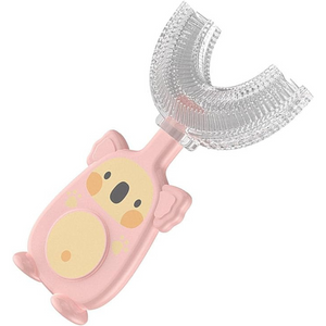 Revolutionary U-shaped design ensures easy, effective baby teeth cleaning. Gentle U-shaped toothbrush. Soft silicone brush head offers quiet, bleeding-free massages. Clean teeth, healthy baby, enhanced independence. Kid-friendly with food-grade bristles, ergonomic handle. Elevate oral care confidently.