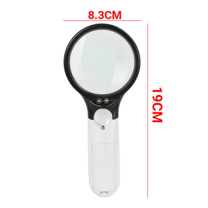 HIGH POWER MAGNIFICATION: Discover clarity with 3X & 45X magnification. Scratch-resistant lenses for reading, crafts, maps, and intricate jewelry. Illuminate with 3x LED light, ideal for night or dark spaces. Easy to use, a thoughtful gift for seniors struggling with small prints.