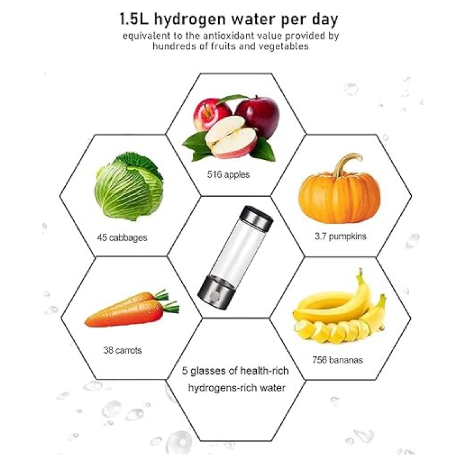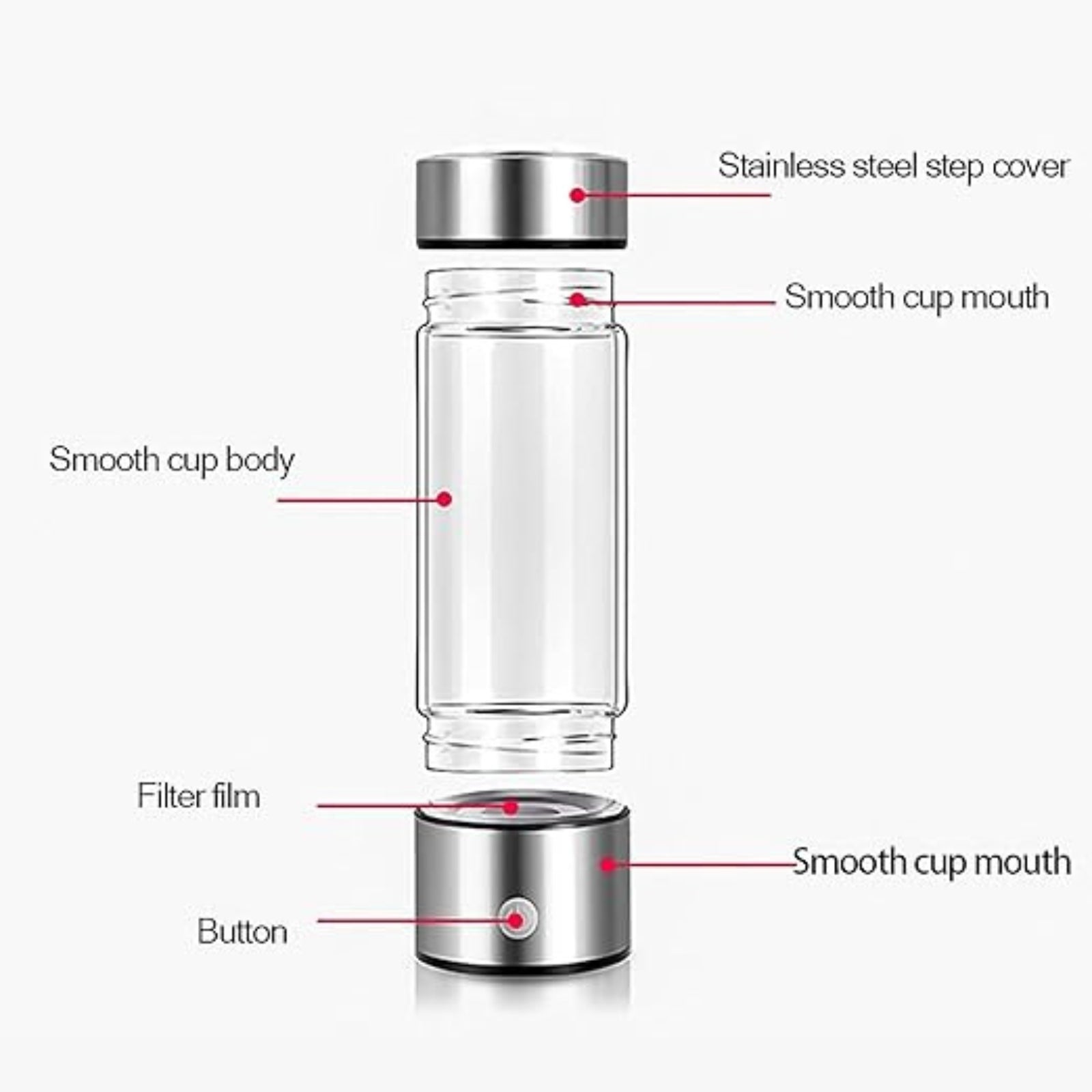 Elevate vitality with Health Hydrogens—the elixir of life. Enjoy anti-aging benefits and metabolic boost with hydrogen-rich water. The cup enhances digestion and cellular repair with compacted water molecules. Beyond purification, the cup sterilizes for a revitalizing hydration experience.