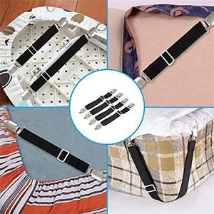 SET OF 4 BED SHEET HOLDERS: Keep your sheets securely in place with these adjustable mattress holder fasteners. These clips and suspenders ensure a smooth and neat bed every time, ideal for preventing your sheets from slipping or bunching up.