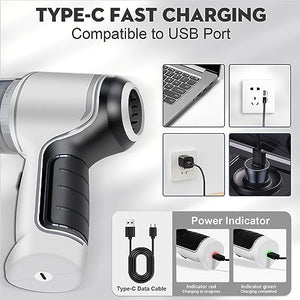 The 120W motor and 95000PA suction offer deep cleaning for cars, homes, and offices. Remove debris, pet hair, and more from carpets and tight spaces. Its cordless, lightweight design ensures easy mobility, with a rechargeable battery providing up to 60 minutes of runtime.