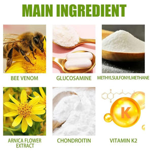 • Ingredients: Bee Venom, Glucosamine, Methylsulfonylmethane, Arnica Flower Extract, Chondroitin Vitamin K2