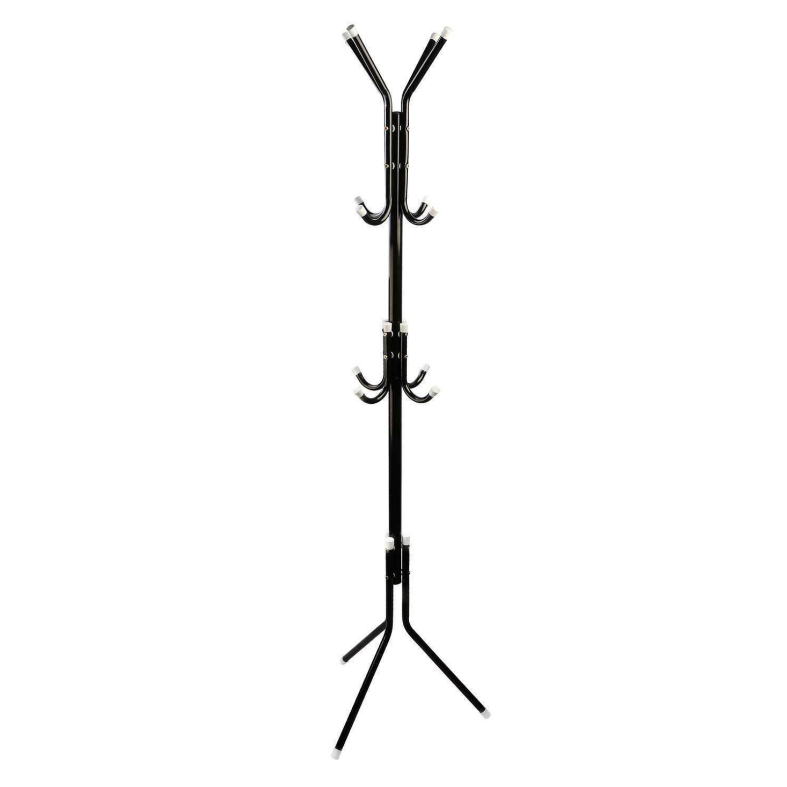 Black 3-Tier Hat Coat Hanger Tree Style Steel Stand 12 Hook Clothes Rack