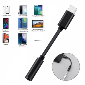 Black USB Type C To 3.5mm Audio Adapter Female Headphone Jack Cable