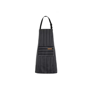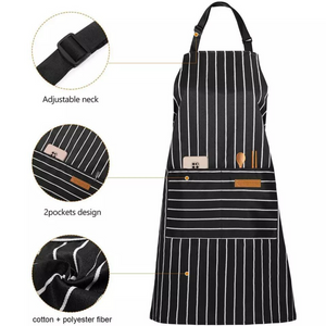 Black Wide Stripe BBQ Chefs Adjustable Apron Hanging 2 Pockets