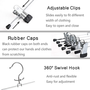 Upgrade Your Closet with Premium Hangers! Discover durable metal hangers that effortlessly hold your clothes while saving valuable space, thanks to their adjustable clips. Say goodbye to wrinkles and hello to a clutter-free wardrobe. Ideal for your closet, bathroom, or laundry room.