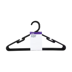Organize Your Wardrobe Efficiently with the 12 Pack Plastic Hangers in Black. Simplify your closet setup and keep your coats, pants, and suits wrinkle-free. Made of durable plastic, these hangers offer reliable support and maximize space utilization for a tidy and stylish wardrobe.