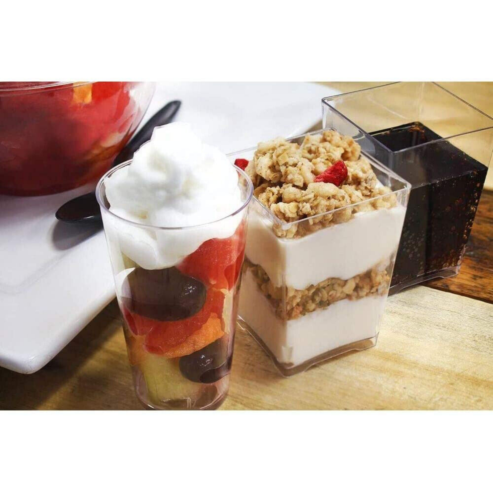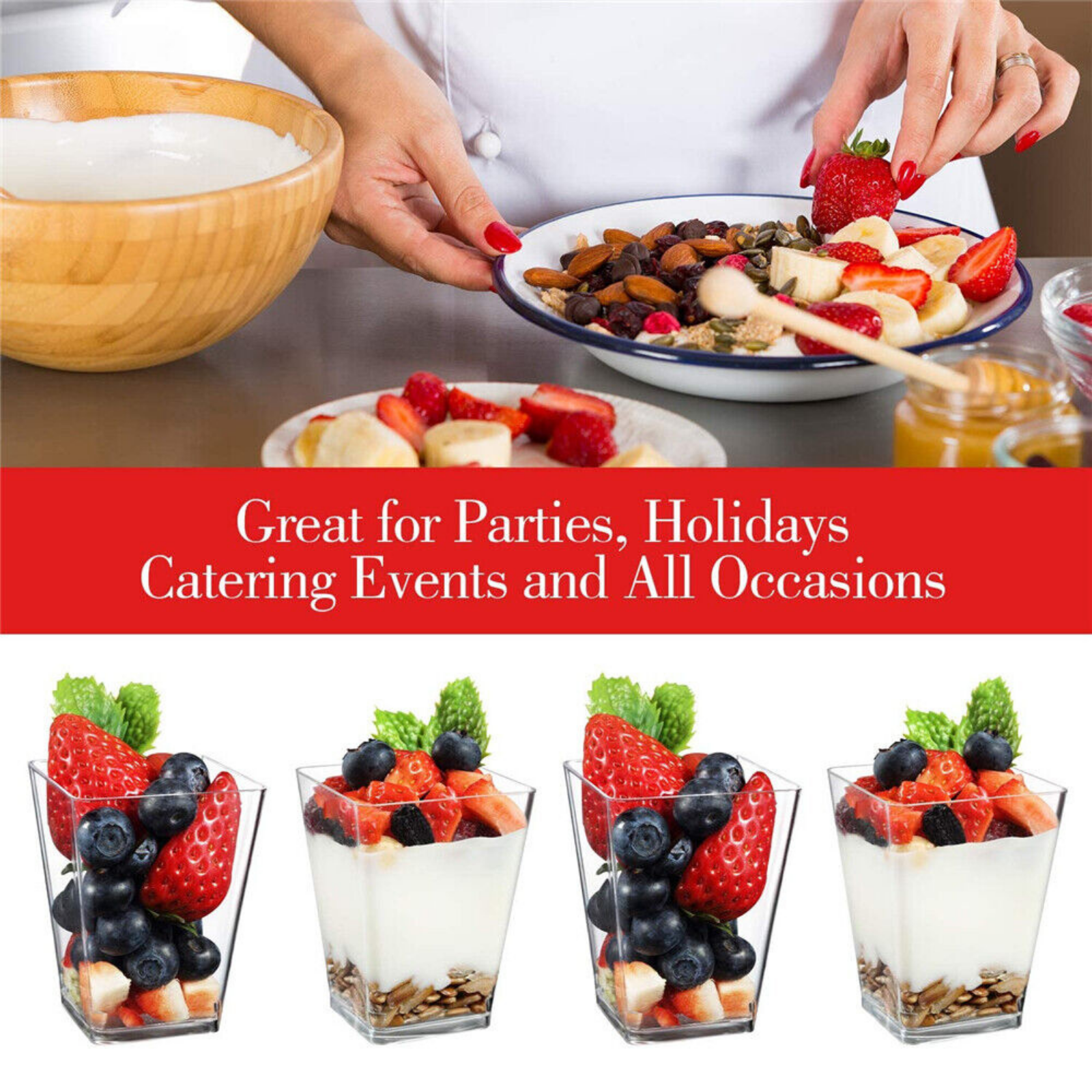 STYLISH & ELEGANT – Elevate dessert presentation with the crystal clear plastic serving cups. Perfect for hors d'oeuvres, tiramisu, and more. Ideal for birthdays, weddings, or casual BBQs. Eco-friendly, wash, and reuse!