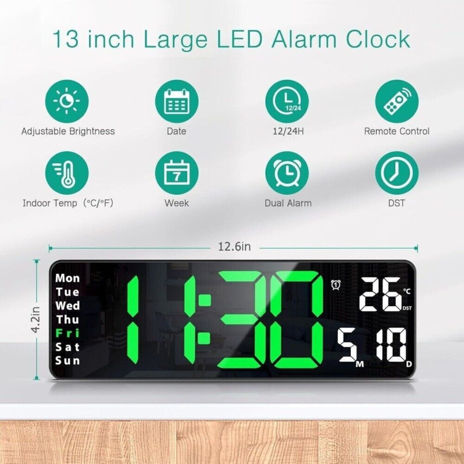 Digital Wall Clock Display Large Big With Calendar Temperature Display 13inch