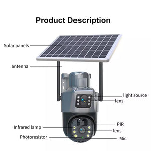 Dual Lens Home Security Camera Wireless Outdoor CCTV 4K WiFi Solar 10X Zoom PTZ