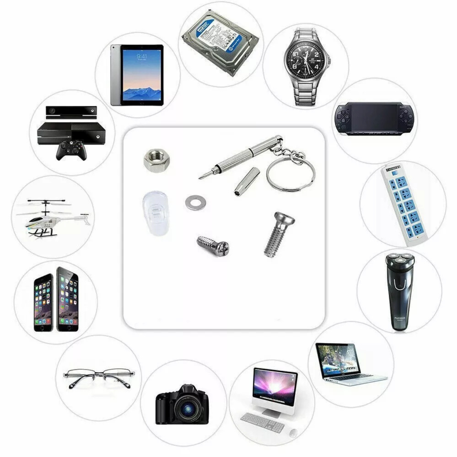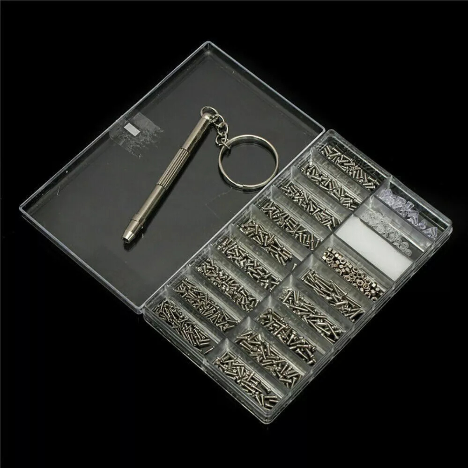 Discover the ultimate toolkit with these screws and a multifunctional screwdriver. Perfect for repairing eyeglasses, sunglasses, and watches, this set includes approximately 1000 pieces of stainless steel screws and nuts. The portable screwdriver features a keychain for easy access.