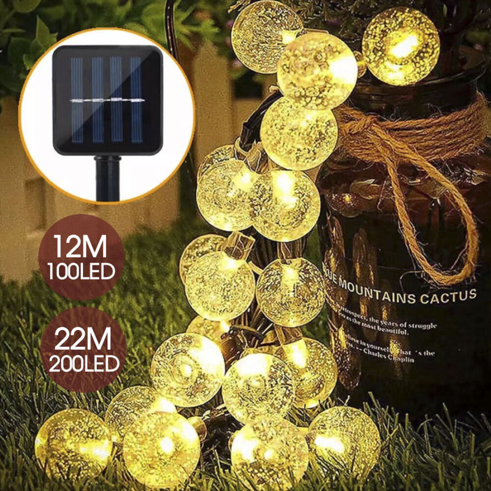 Solar Magic: No Bills, No Hassle! Experience the enchantment of solar-powered globe string lights. They light up your nights with 8 modes, waterproof durability, and memory settings. Perfect for any occasion.