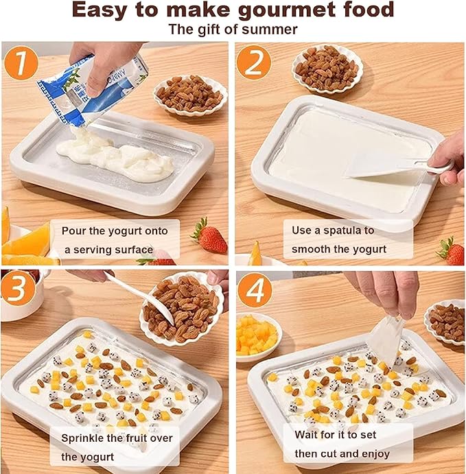 MAKE HOMEMADE FROZEN DELIGHTS: This mini ice cream maker is perfect for creating rolled ice cream or frozen yogurt at home. With its compact design, it allows you to prepare delicious, creamy desserts quickly and easily, adding a fun twist to your treat-making routine.