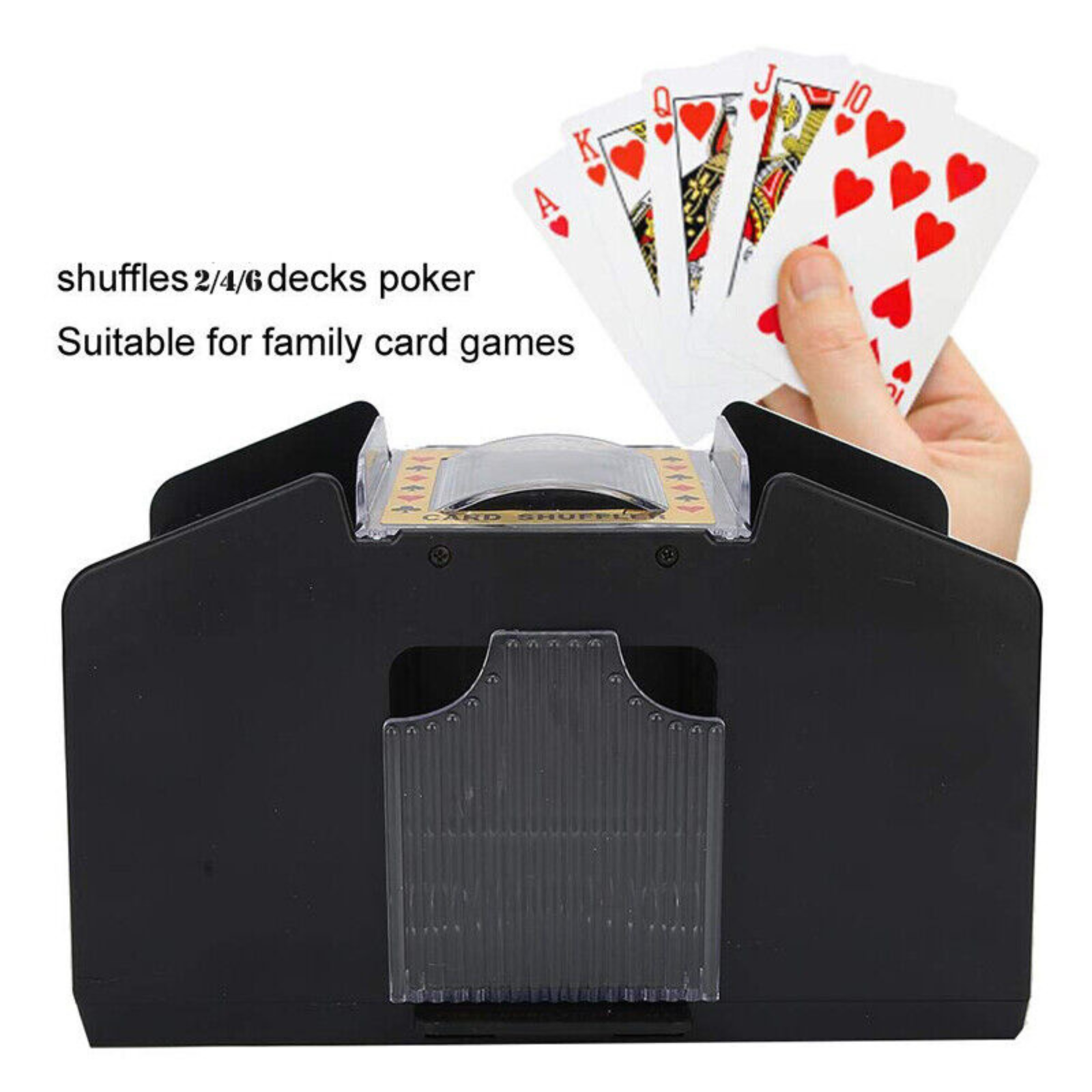 Effortless Card Shuffling: Shuffle 1-6 cards effortlessly.
