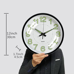 Glow In The Dark 12'' Night Luminous Quartz Wall Silent Clock Home Decor Clock