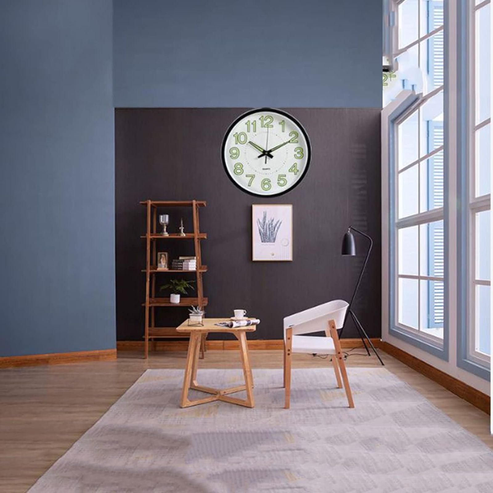 Transform your living space with the 12'' Luminous Quartz Wall Clock. Enhance your home decor with a night glow feature that radiates elegance, ensuring a serene atmosphere day and night. Its silent operation adds tranquility to any room, making it ideal for bedrooms or offices.