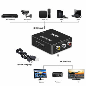 HDMI To RCA Composite AV CVBS 3RCA 1080p Video Cable Converter Downscaling