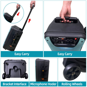 • Portable & PA System Design: Pull rods and wheels enable easy transport; bracket interface for PA setup.