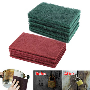 VERSATILE & DURABLE: This set of 10 scouring pads is designed for efficient cleaning across various household surfaces. Crafted with abrasive materials, these pads ensure a thorough clean while being long-lasting and easy to handle.