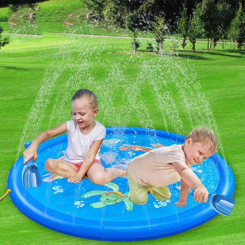 • OUTDOOR SPLASH PAD POOL: A refreshing backyard water play mat that keeps children cool during hot summer days.