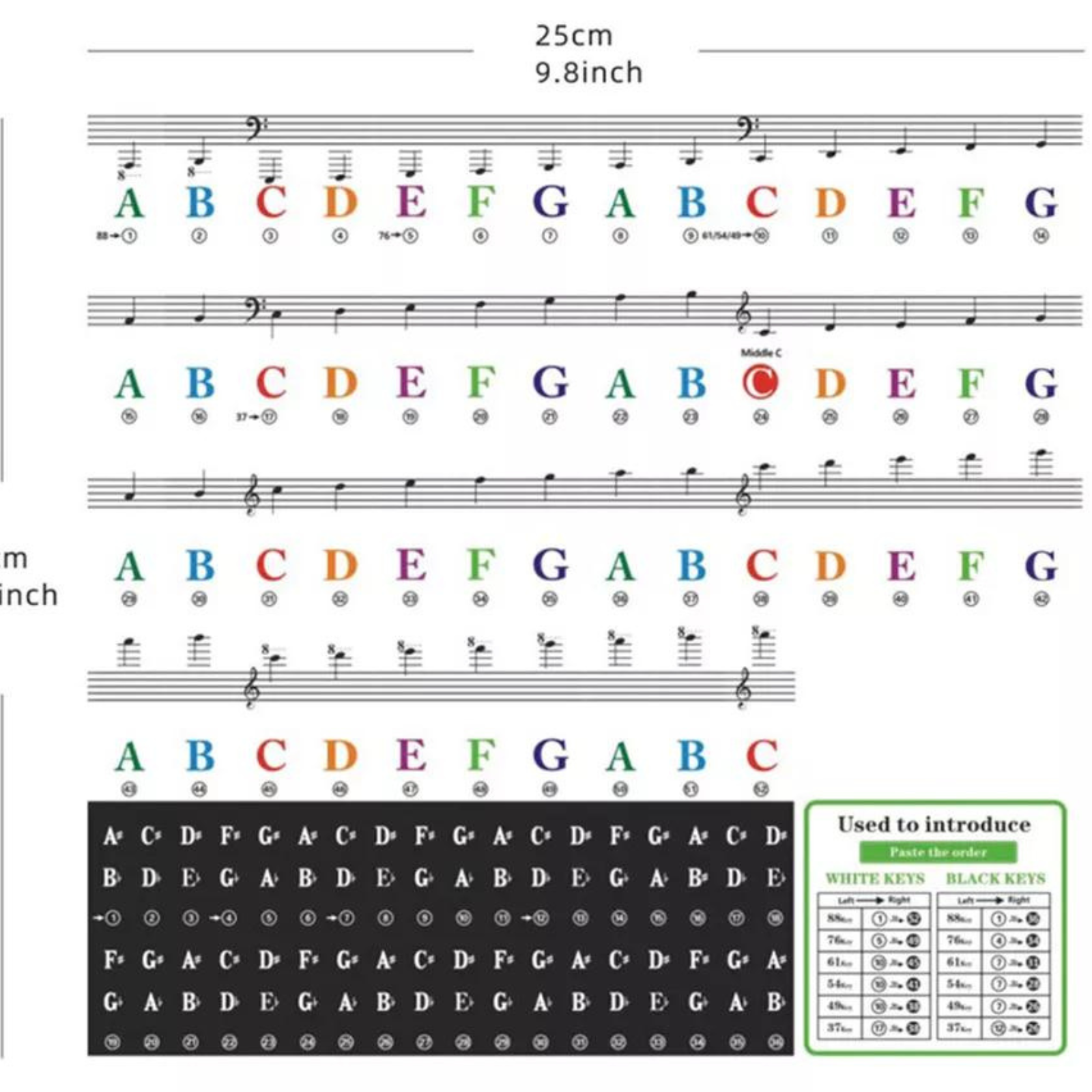 Key Note 37/49/54/61/88 Keyboard Sticker 5 in1 Universal Piano Learner Music