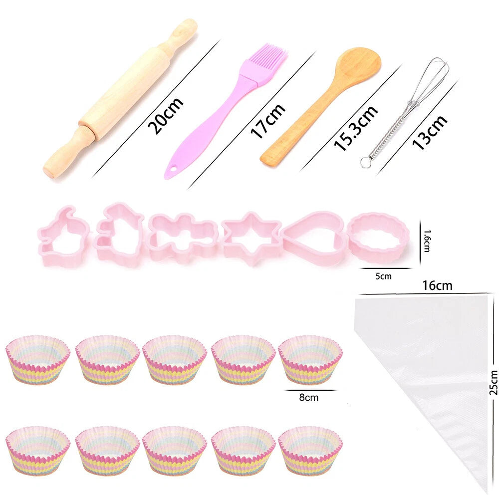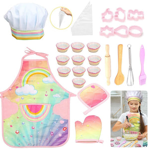 COMPLETE KIDS CHEF SET: The 26-piece Children's Cooking Set is designed to inspire young chefs. Featuring a colourful apron, chef hat, and various utensils, it encourages imaginative play and helps develop essential kitchen skills in a fun and safe environment.