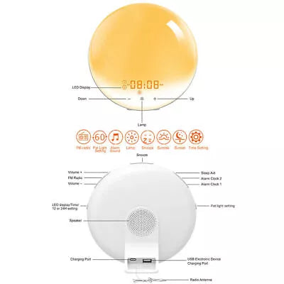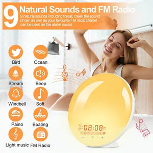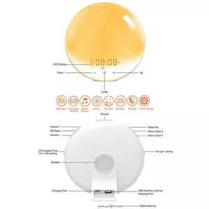 LED Bedside Sounds Night Lamp FM Radio Wake up Light 7 Color Sunrise Alarm Clock