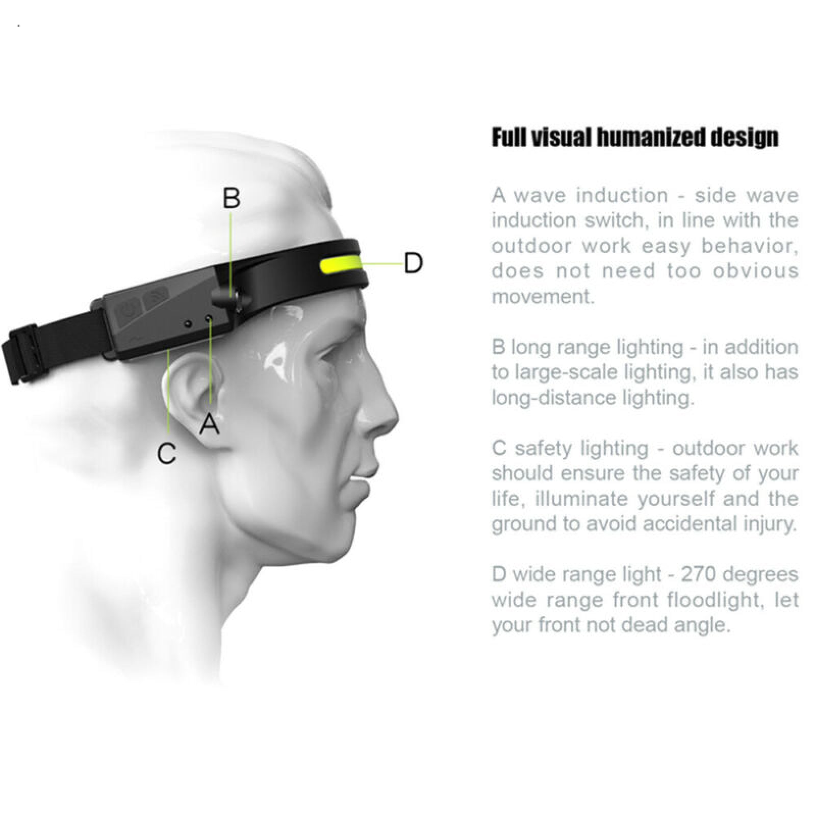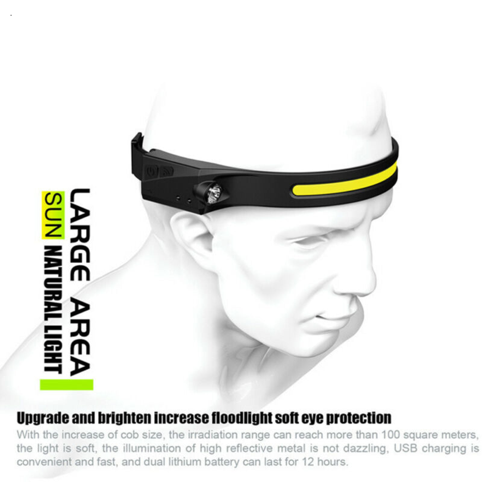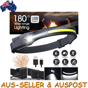 LED Motion Sensor Head Torch Lamp Headlight USB Rechargeable Headlamp Waterproof