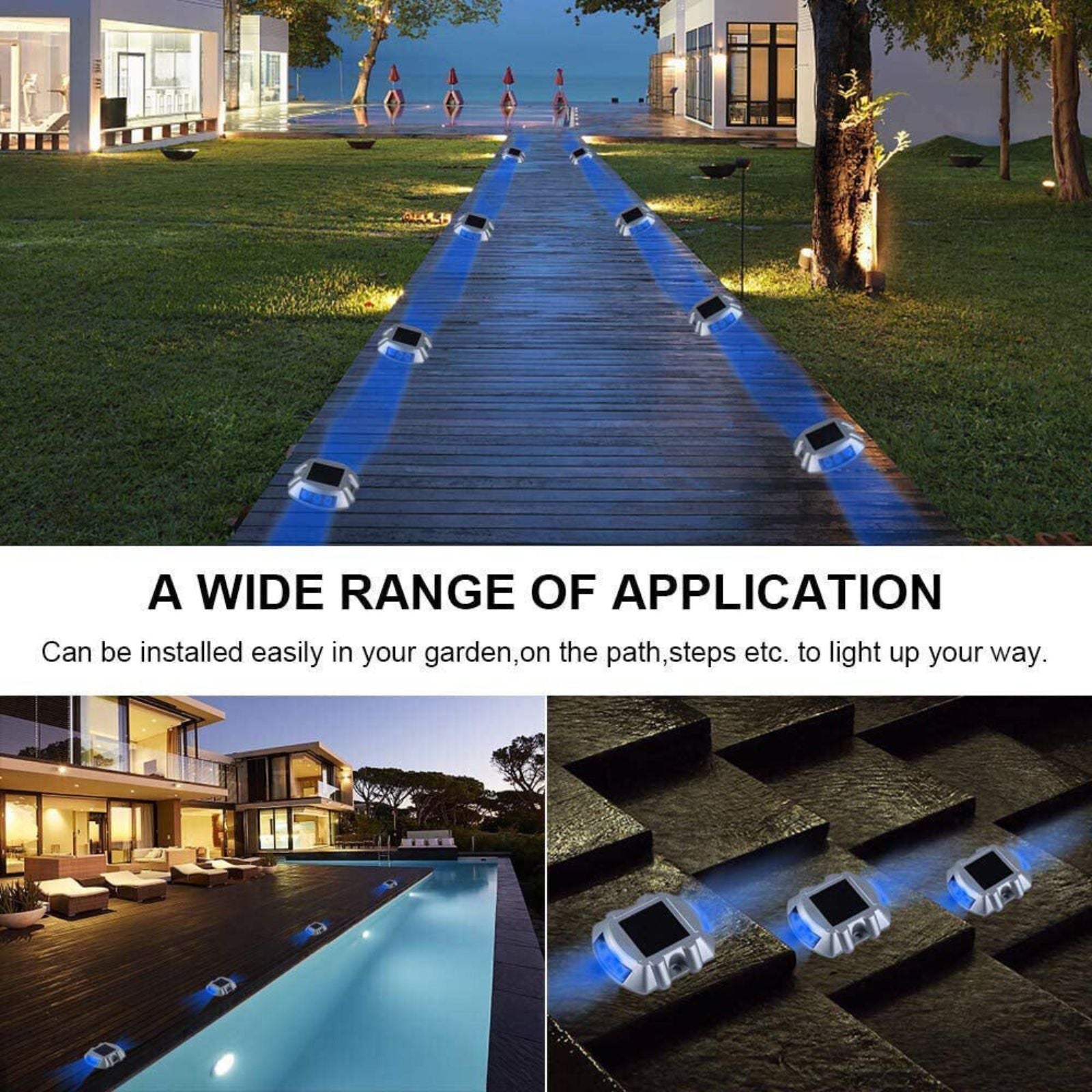 LED Road Markers 2pcs Solar Driveway Blue Light For Garden Pathway Stair