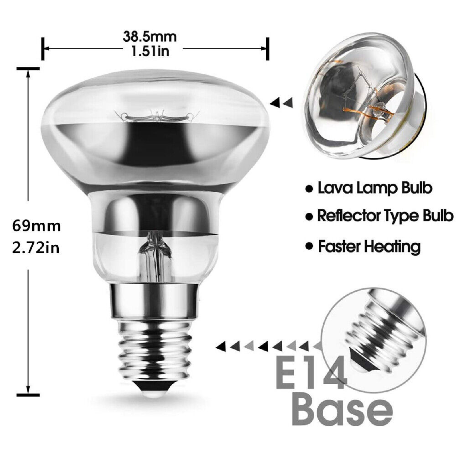 Light Bulb 240V Replacement Lava Lamp E14 R39 30W Spotlight Screw