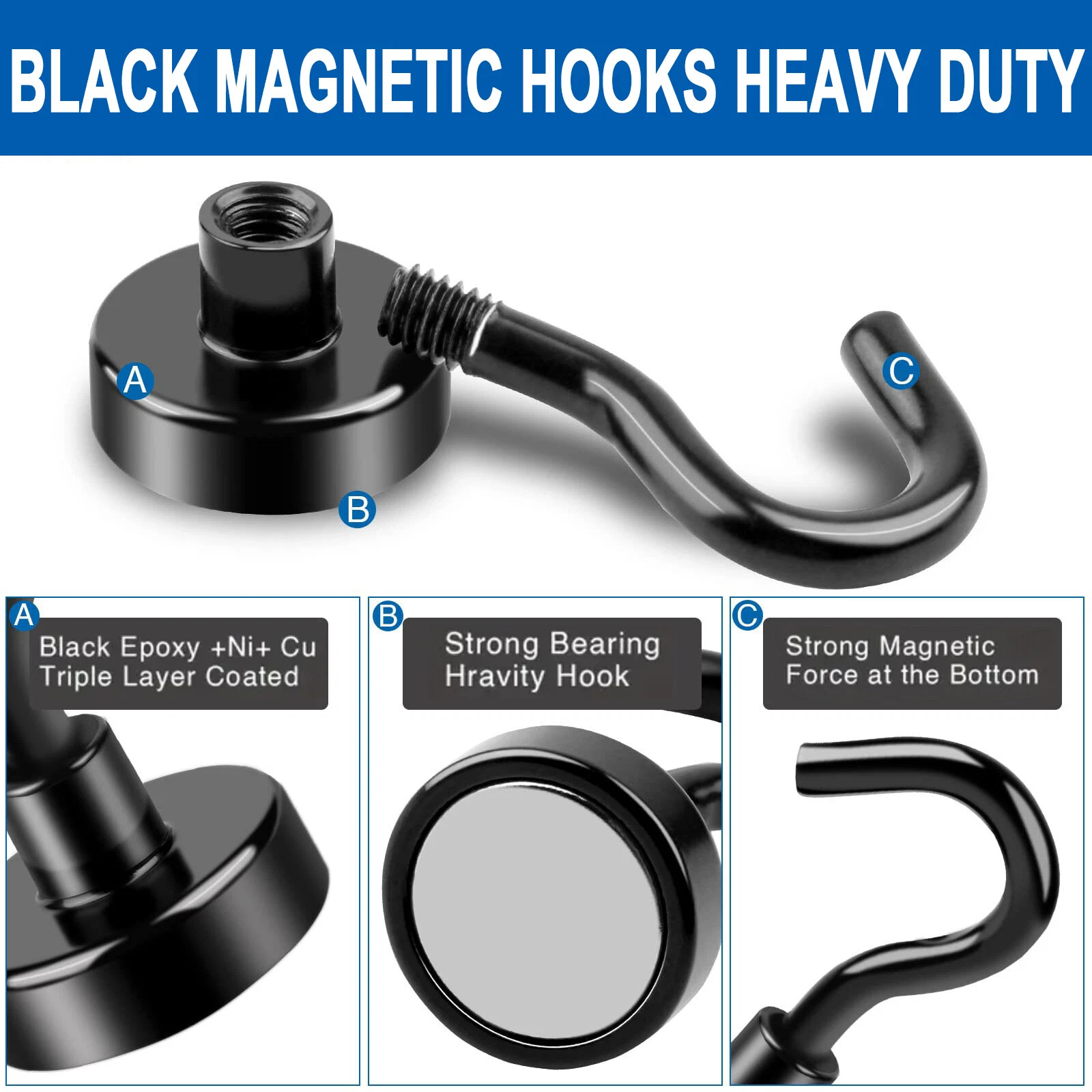 Magnetic Hooks Heavy Duty 8kg Neodymium Magnet Set 12x