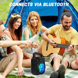 PREMIUM SOUND & PORTABILITY: This Bluetooth speaker delivers crystal-clear sound with HiFi support and features a big horn for enhanced performance. With colorful party lights and a microphone connection, it's the perfect companion for outdoor gatherings and karaoke sessions.