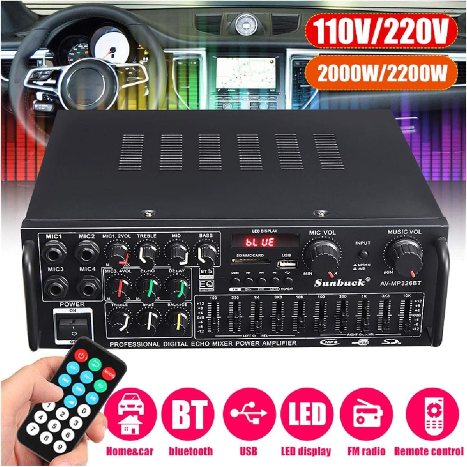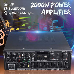 Power Amplifier 2000w Sunbuck Stereo Bluetooth FM SD Remote Control Karaoke