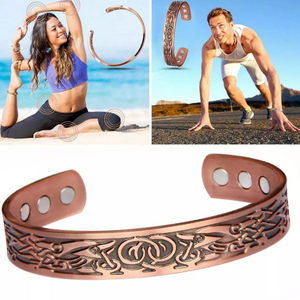 Experience ultimate comfort and relief with this Magnetic Bracelet, featuring pure copper and 6 powerful Neodymium magnets. This stylish bracelet is designed to ease pain, muscle tension, and fatigue while providing an adjustable fit for any wrist size.